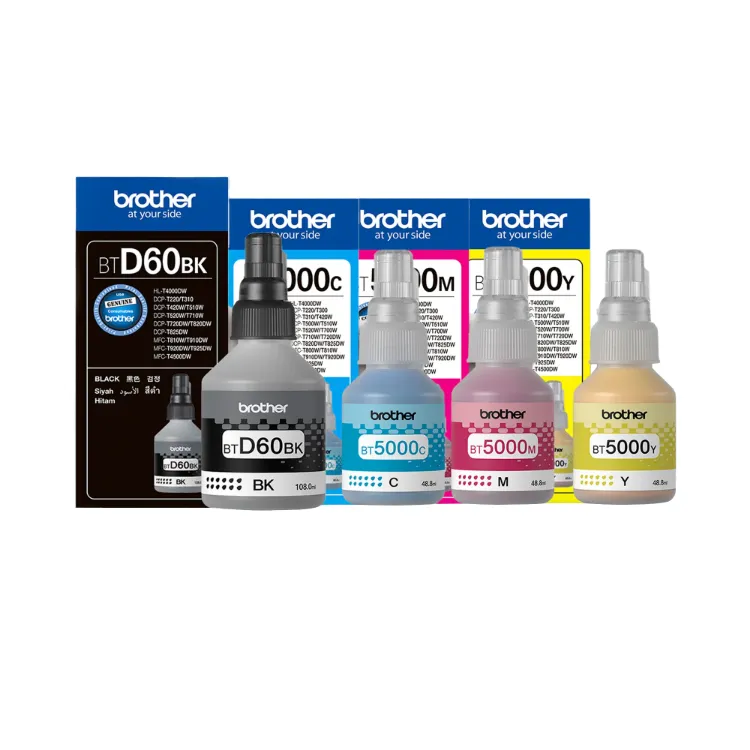 Brother BT-D60BK & BT5000 CMY Ink Bottle Set (4 Colors) – Compatible with Brother T200, T300, T400, T500, T700, T800, T900 Series Printers